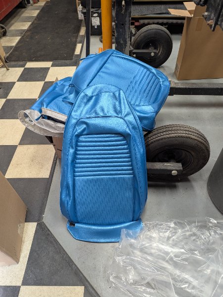 Lookie Lookie what I got delivered today. Ordered all the interior stuff on July 14th. Got some of the stuff including the seat foam a few weeks ago. Then I got worried and called them. Told them I definitely had to have this before the 13th of October. So I guess the girl helped me out. Finally got the vinyl covering for the buckets and the rear bench. I'm stoked.