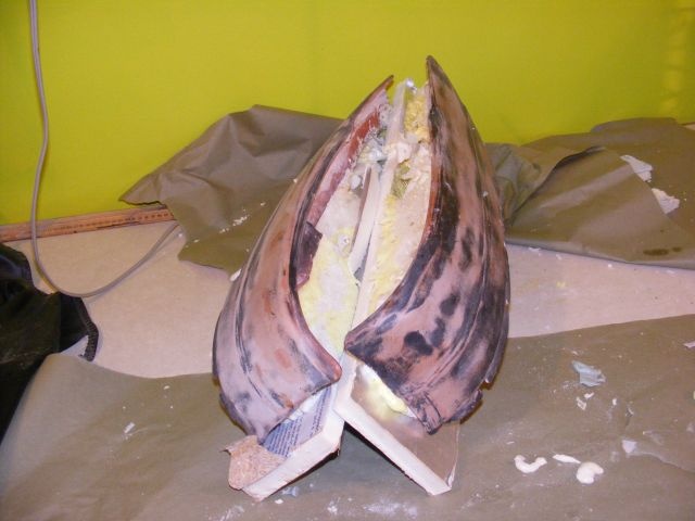 first attempt for the glovebox mold making. didn't work very well. and made me realise that it had to be a female draw down mold instead of a male. now to learn how to do one of them:D