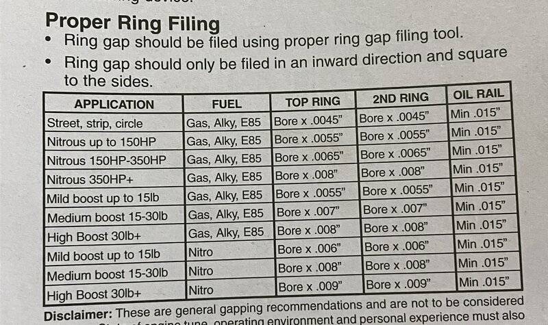 The sheet below came with the rings I used with my 440/495 build in 2022 using Forged Icon quench/dished pistons.