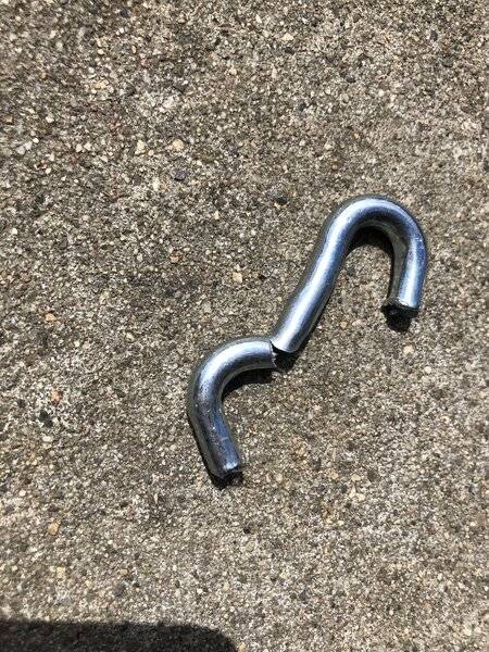 At first we thought we broke the stud at the rear of the engine we were hooked up to but in looking at the sling we noticed the links on the end holding the brackets were not welded and it just opened up till it broke.