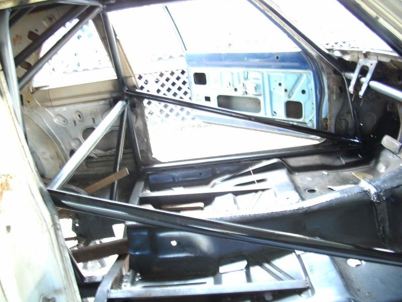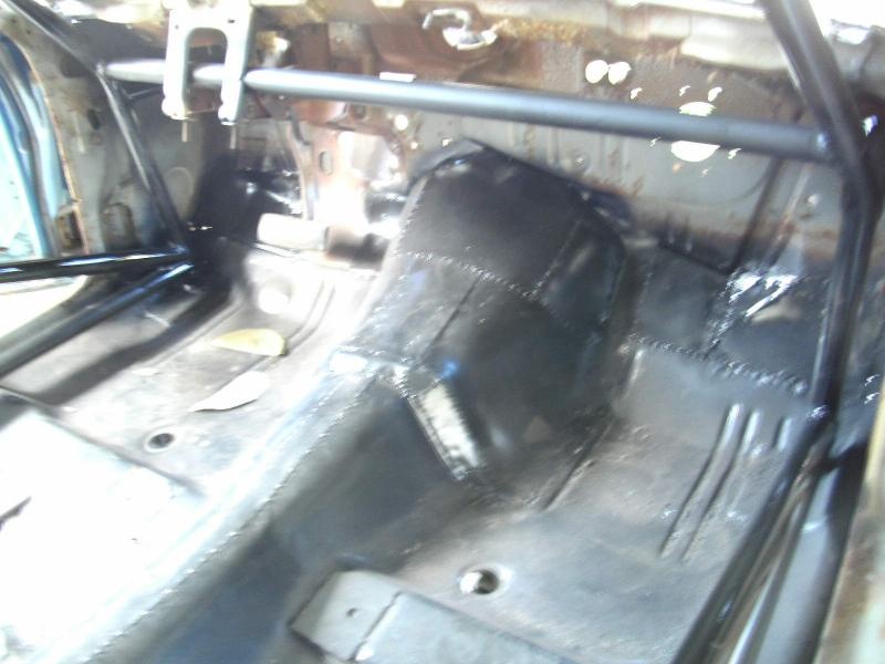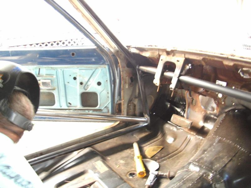 Ok, both front bars are in, the door bars are in so the cage is done. The front floor and tunnel are done, there is still some tacking left to do but it's basically done.