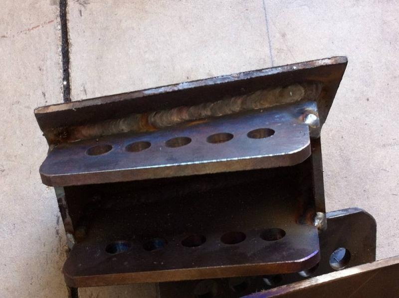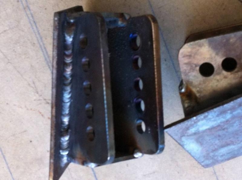 I have the front upper hangers cut and drilled. When making them I will be sandwiching the frame rail up and around so they should be pretty darn strong.