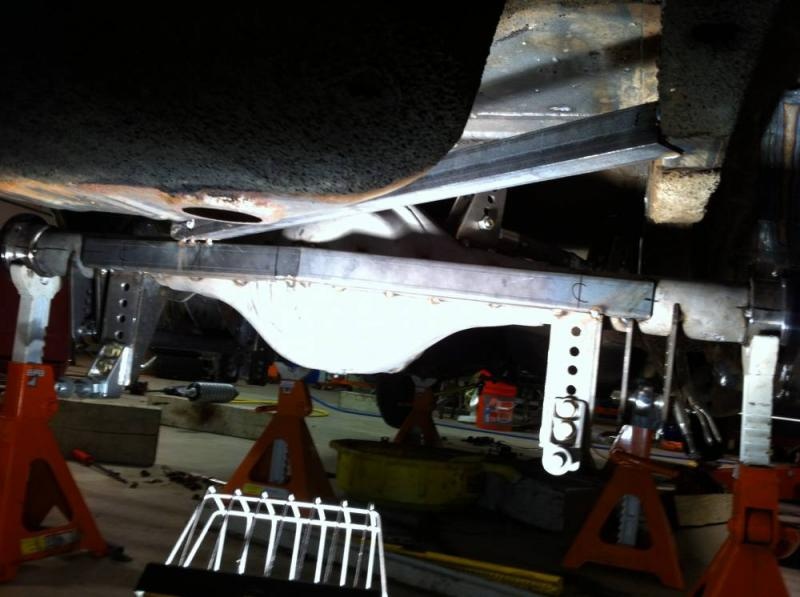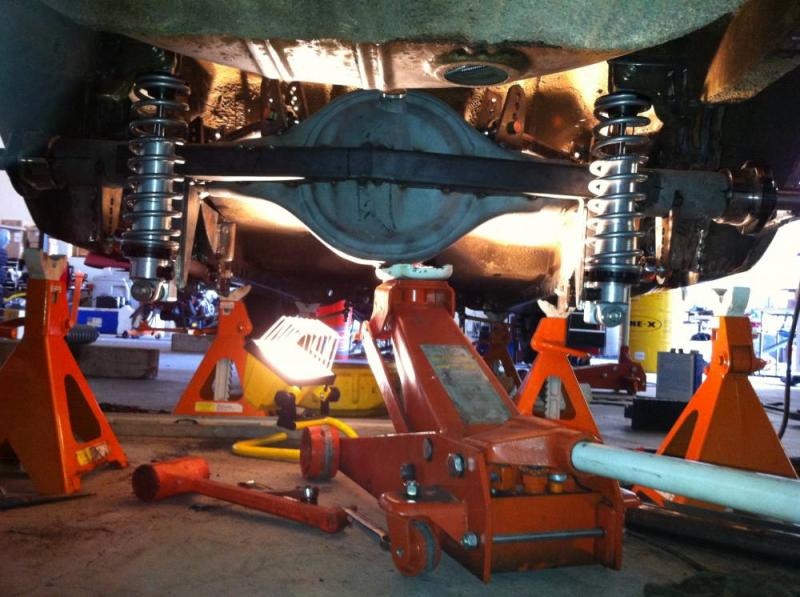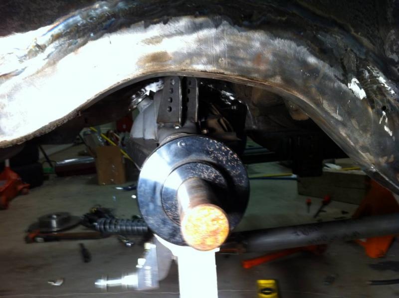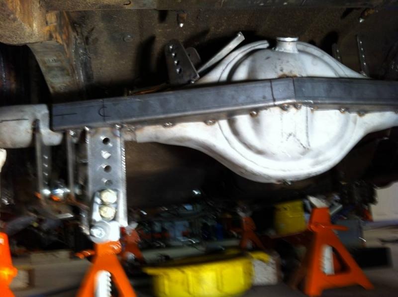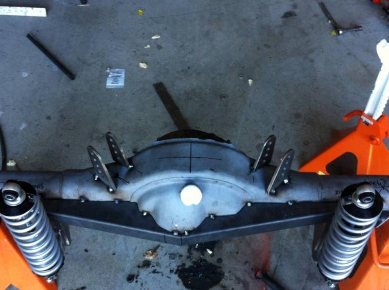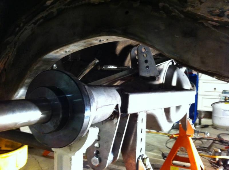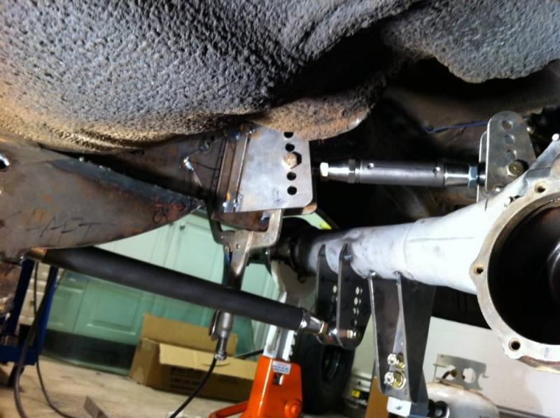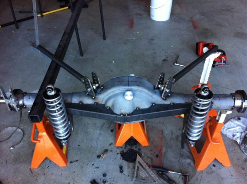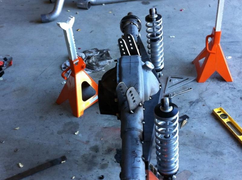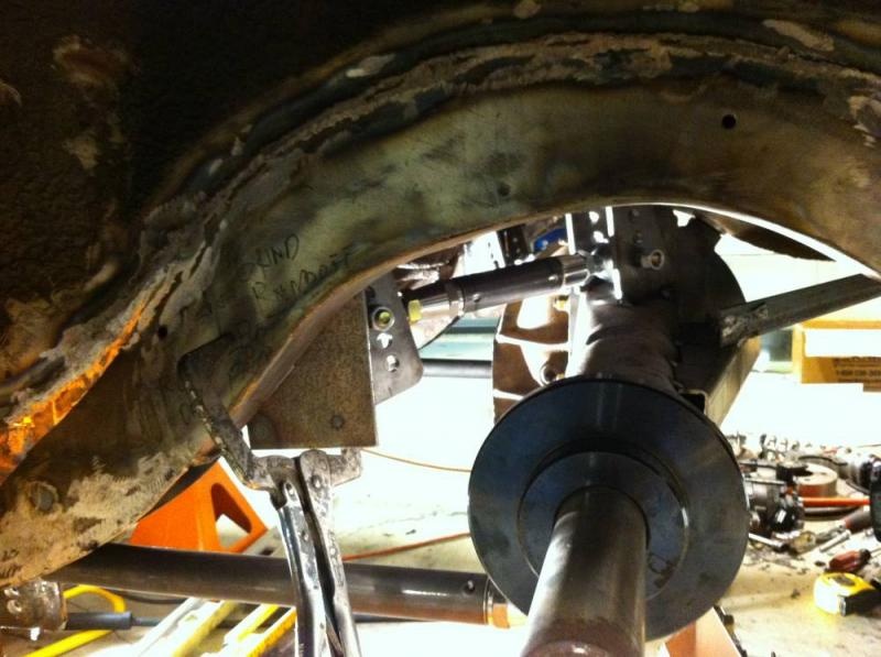 Small progress. I got the rear end set and kicked off so it would not move centered in the car and the pinion angle set pretty close to where it will need to go. Now I just need to box the upper brackets in, install the shock tower that I already have cut and then weld it all off.