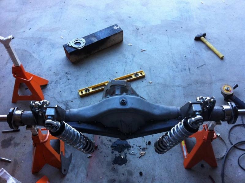 No not yet. I ran into a small problem on the upper shock mounts in the rear. The shock tower I was going tp set a few days ago is in the way of the Oil Filler on the housing when the suspension goes fully compressed. The fix is I will be making some custom brackets, 1 for each side to carry the shock. I took a few days off messing with it to come up with the plan on these. I was going to just build what first came into my mind but I am glad that I didn't because I have a better idea of how I am going to build them now.:D