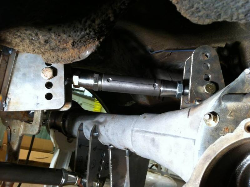 Well it fits. I modified the front hangers so there will be plenty of adjustment. I am working this one off the 1/3 - 2/3rd's rule. 2/3rd's of space is at the lower link bar location on the bottom of the axle and 1/3 is at the top from center of axle. Almost all adjustments will be done at the front of the Rod End by going up or down on either. Instant Center to start will be 12" back from the front tire & 9" off the ground. Plenty of adjustment to put it out past the front bumper or 1' in front of the rear tire.