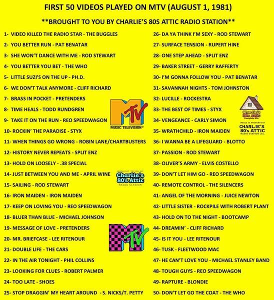 There's no Steely Dan on that list! From back in the day that I couldn't afford cable TV.44 years ago , we would stay home on weekends and actaully watch MTV and wait for days for new videos , lol pretty crazy