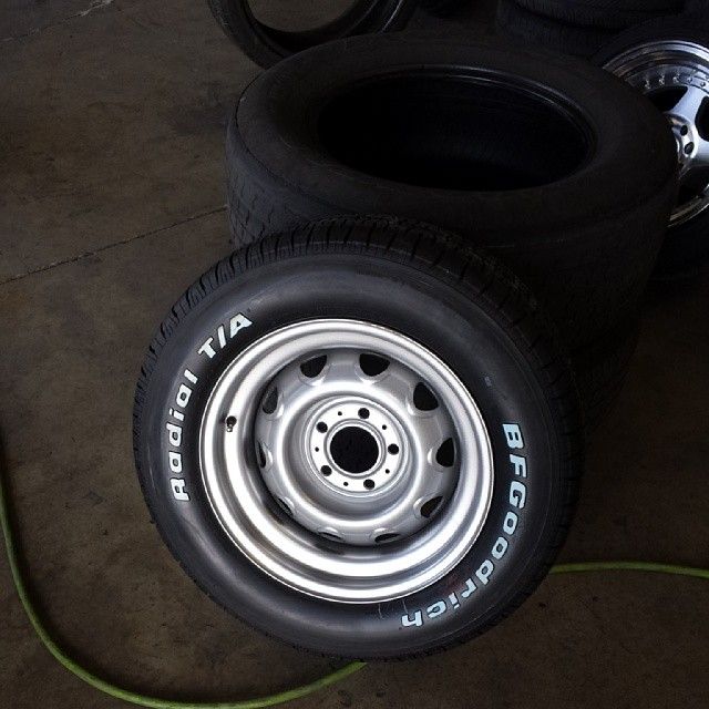 As stated above,i bought these big bolt pattern (5x4.5) wheel vintiques rallye wheels from summit racing which are 15x7's with a 4.25 back space. I bought these with brand new 225/60/15 bf Goodrich tires 2 weeks ago for $450+.Tires are mounted but as u will see in the pictures car is on jack stands and wheels/tires haven't touched the floor yet.I want to go in another direction.