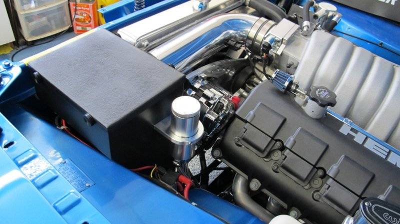 Air intake I have is a carbon fiber piece from Arrington Engines, I've been running it on my '09 Challenger SRT8 and looks like it will fit well on the Barracuda. Gotta trim 1/2-1" off to get more clearance for the filter or alter the inner fender.