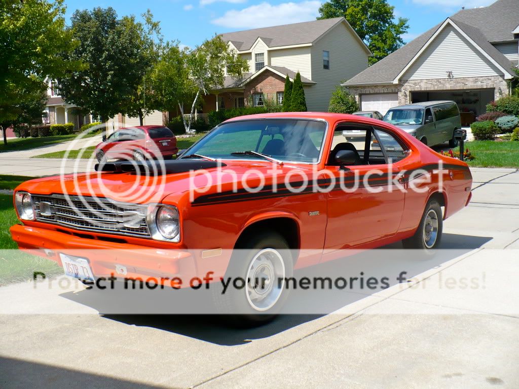 Here's a link to an album of photos of the Duster (and one of my friends' cars). Clicking on the photo should go to the album, I think, sorry if the photo is huge!